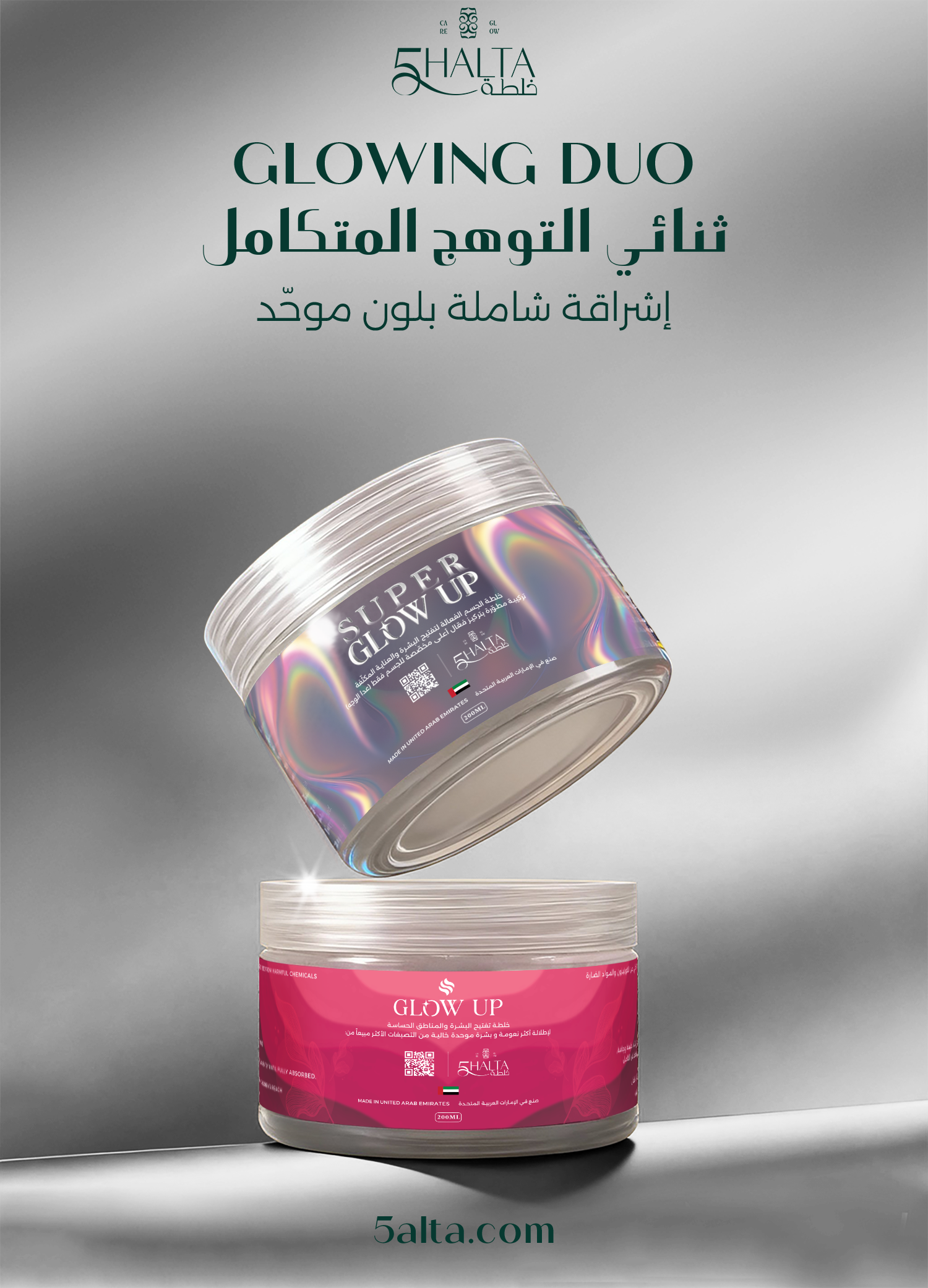 يجمع بين Glow Up لتفتيح وتغذية البشرة بلطف، وSuper Glow Up لتفتيح المناطق الغامقة والعنيدة بنتيجة فاخرة ولمسة ملكية 💎